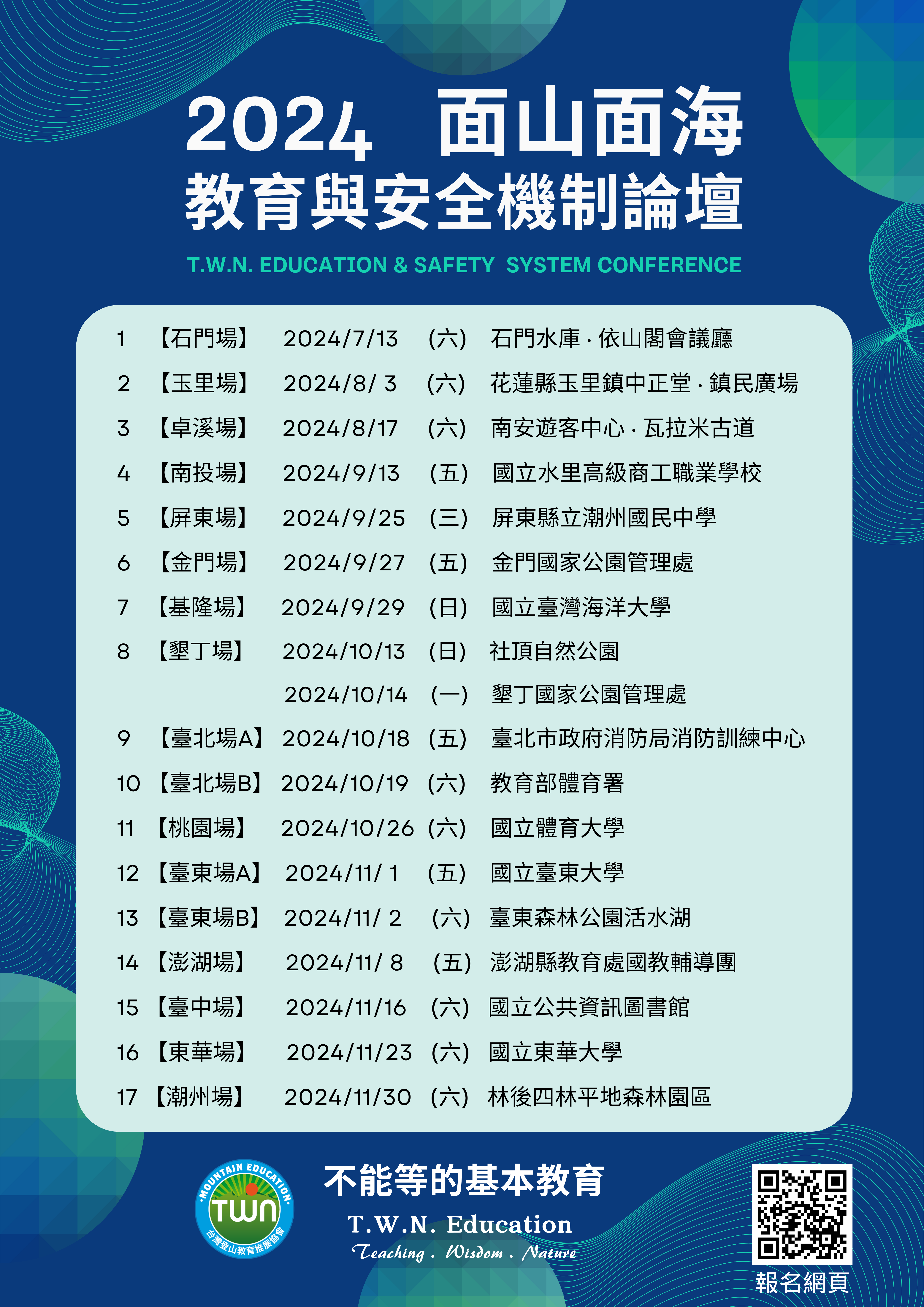 三、檢附旨揭論壇總表1份,各場次議程表及報名詳協會網站: http://twnmouedu.wix.com/-twnmountain,若有相關問 題,請寄信至協會電子信箱:twnmouedu@gmail.com。