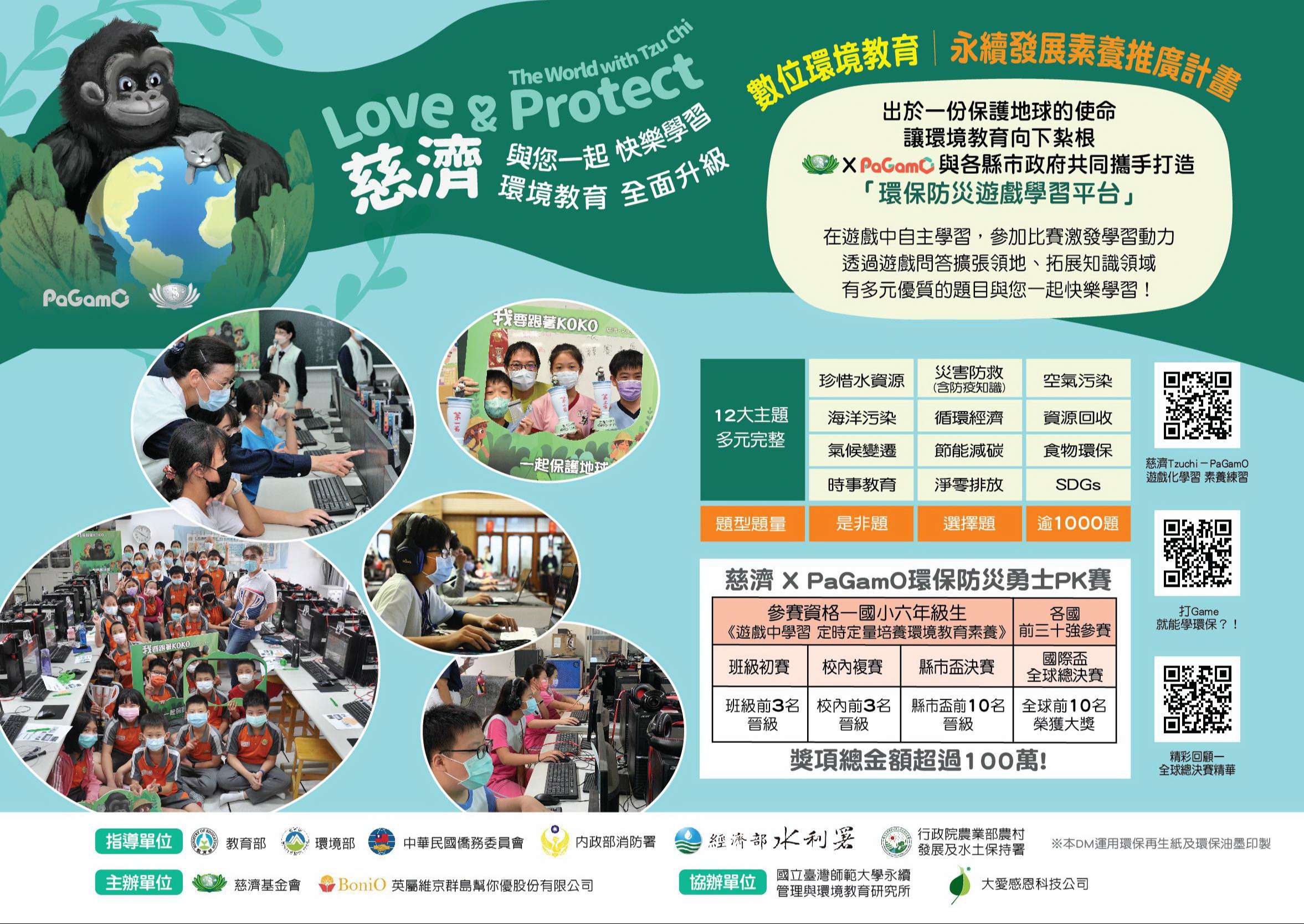 二、財團法人中華民國佛教慈濟慈善事業基金會與英屬維京群 島幫你優公司進行公益合作,共同推動數位環境教育與永 續發展素養,藉由「慈濟xPaGamO環保防災勇士養成計 畫」,透過豐富、有趣的電競賽活動,激發學童自主性學 習動機,建立正確的環保防災知識、技能、態度及價值 觀,進而在生活中落實具體的環保防災行動。