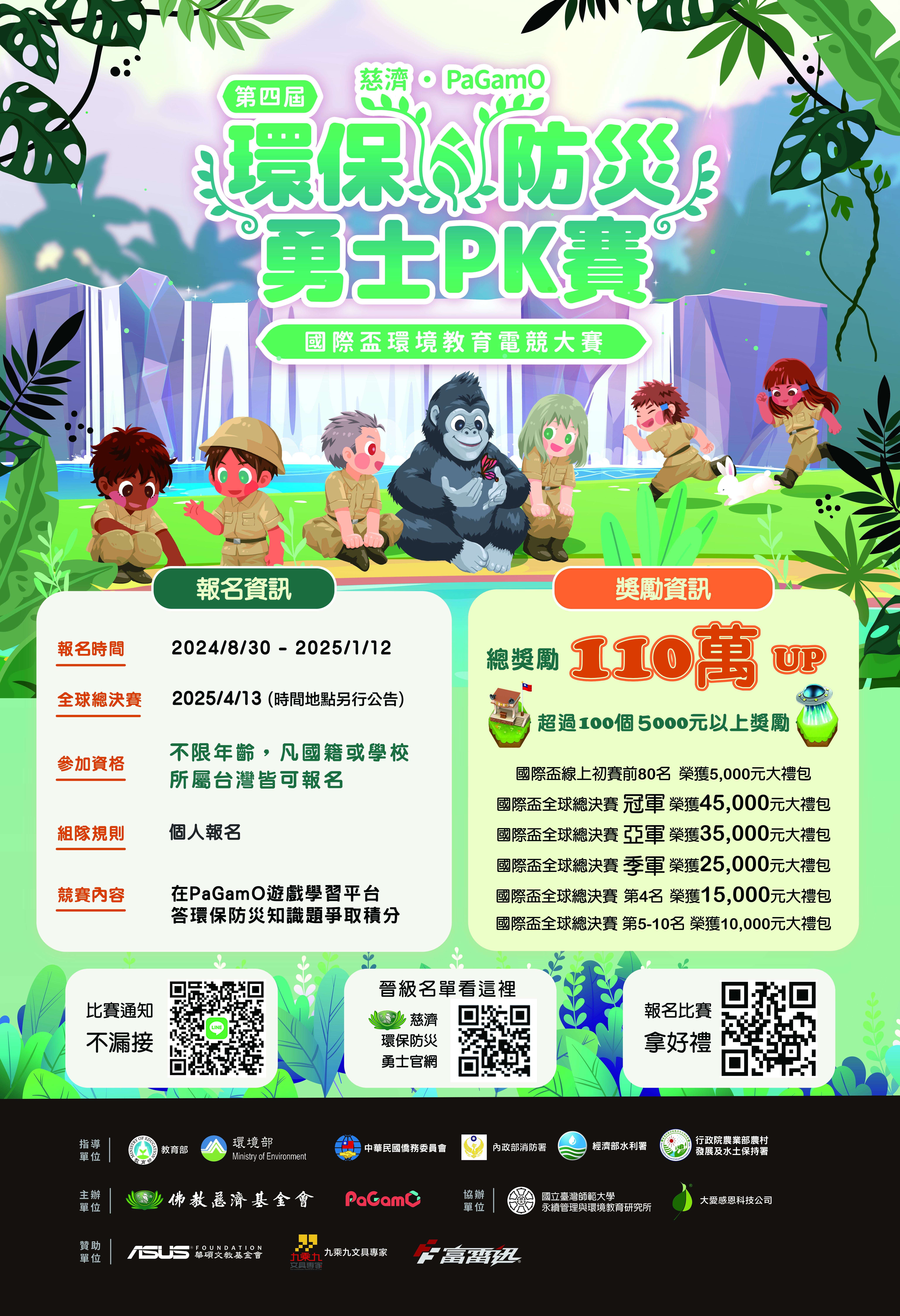 七、檢附慈濟xPaGamO【臺北市】縣市盃環保防災勇士PK賽活動 簡章、環保防災電競DM及國際盃-2024慈濟環保防災勇士PK 賽海報各1份。