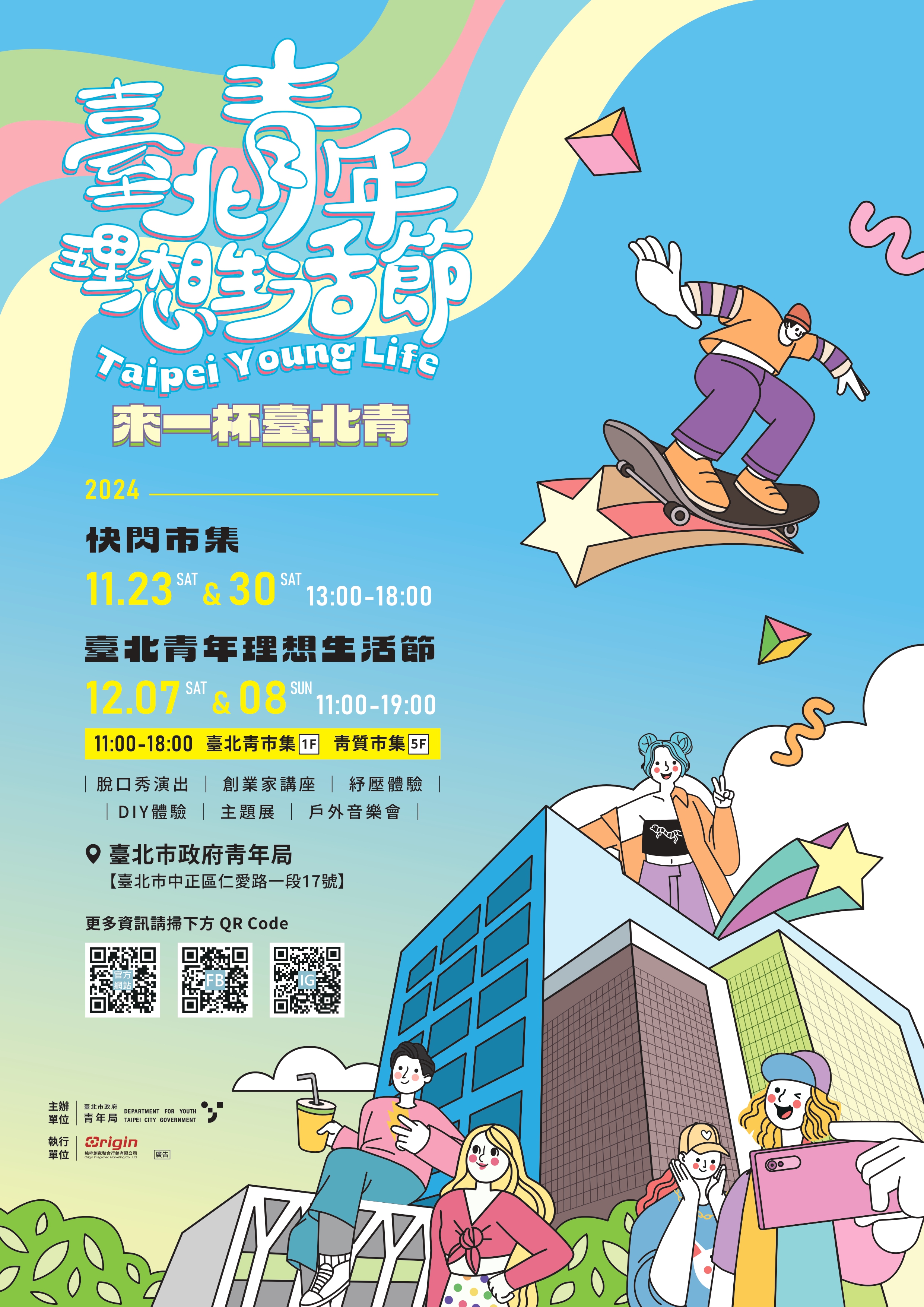 本活動皆免費參加,詳情請見本局官網https://tpyd.gov. taipei/Default.aspx。