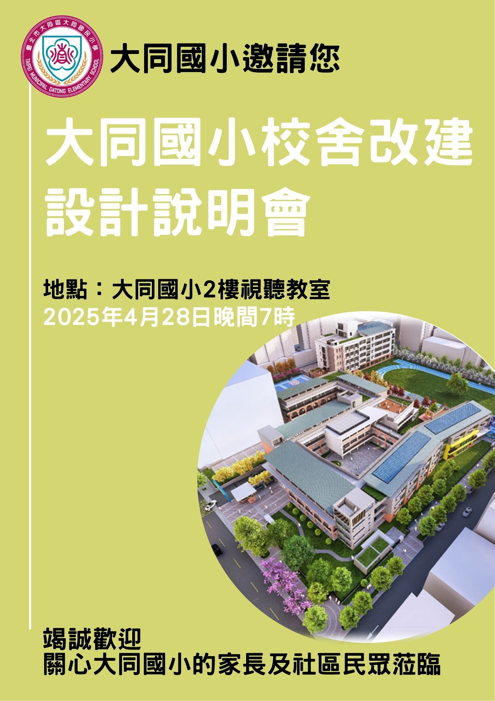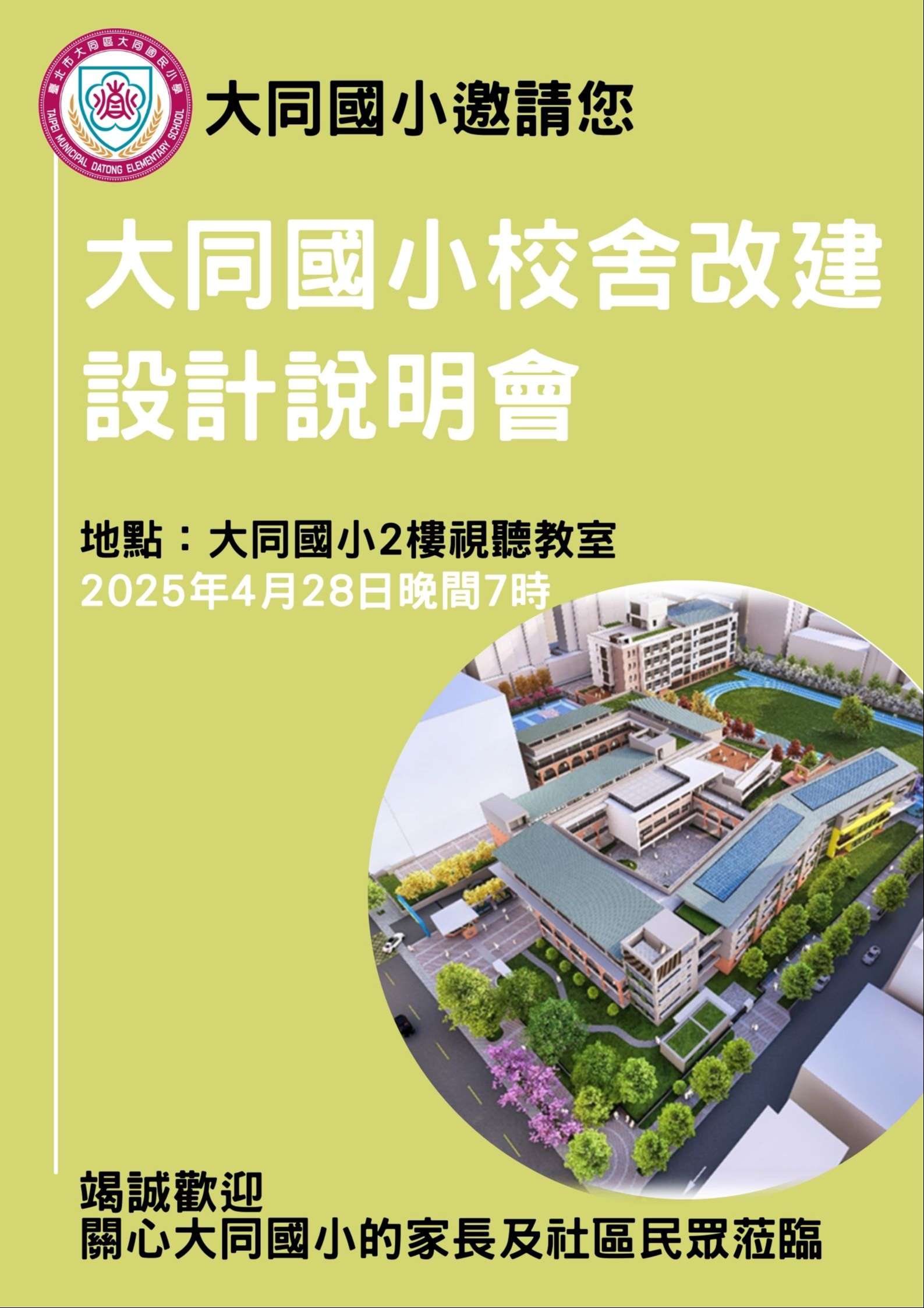 竭誠歡迎關心大同國小的家長、社區民眾蒞臨