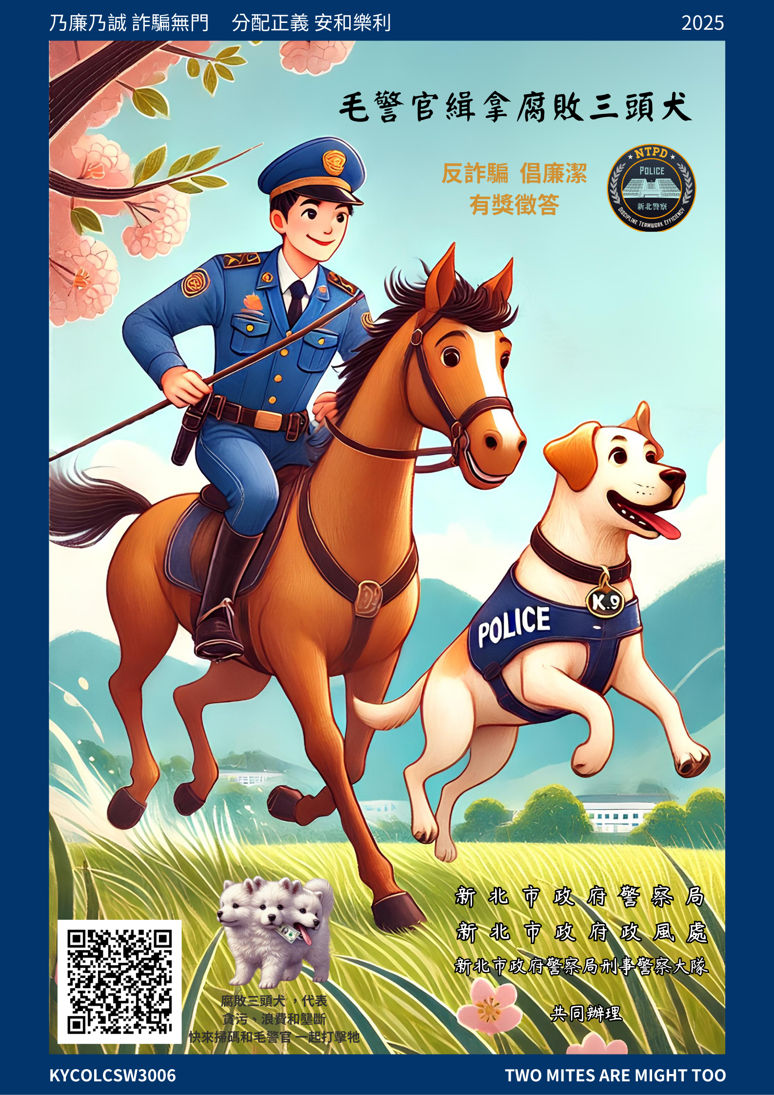 一、依據教育部國民及學前教育署114年5月6日臺教國署學字第 1140045204號函辦理。 二、為強化學童防詐意識、提升識詐能力,透過校園推廣正確 資訊,共同營造安全校園環境,特辦理旨揭活動,資訊如 下: (一)參與資格:凡在中華民國居住之人士,均可參加。 (二)活動時間:即日起至114年5月31日(星期六)止。 (三)活動方式:有獎徵答題目共計10題,皆為單選題,得分 達70分以上,方符合抽獎資格,並預計於六月下旬公布 抽獎結果。 三、相關資料可逕自於新北市政府警察局網站下載(首頁/訊息公告/廉政園地/三一廉政,網址:https://reurl.cc /W03m4y)。