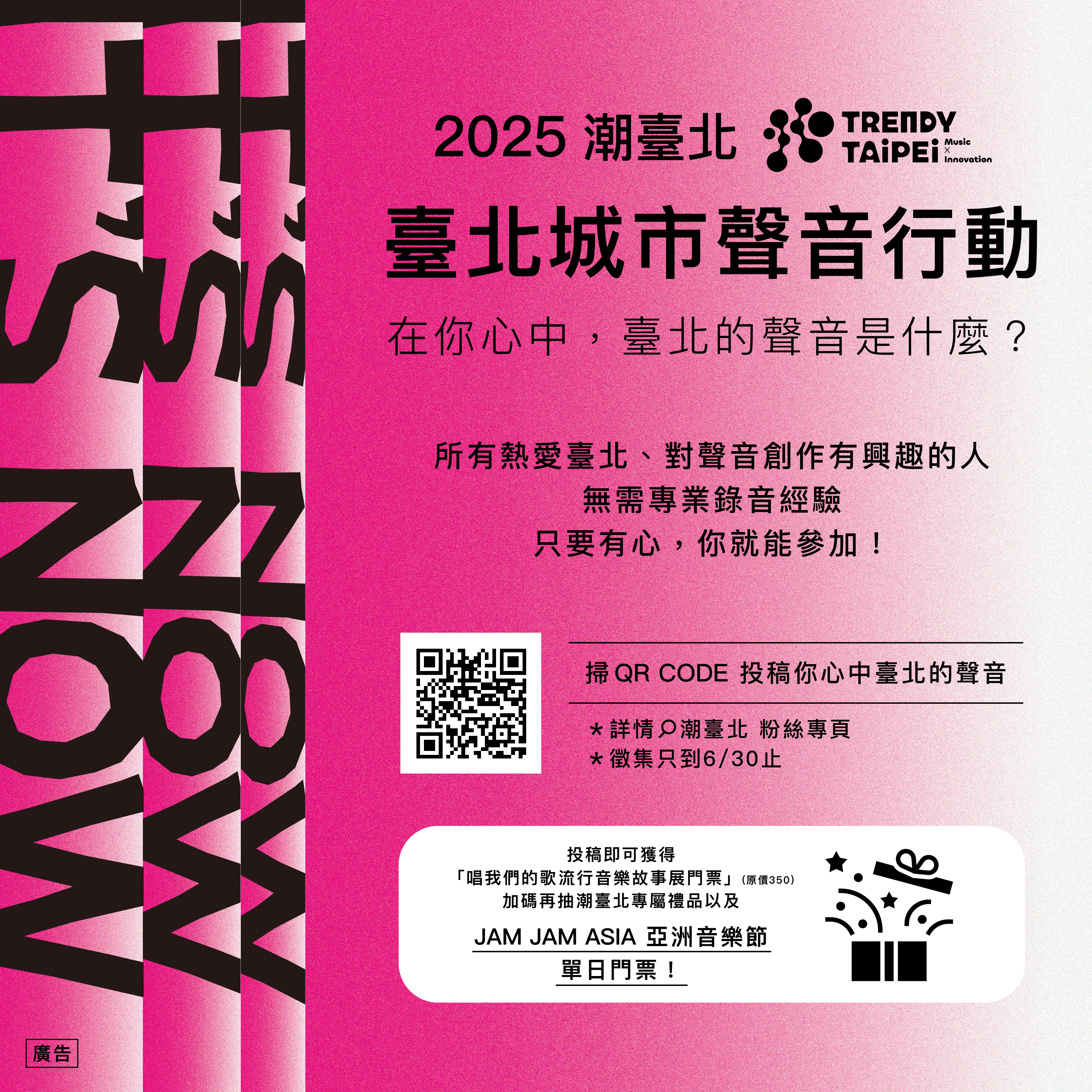 一、依據市府文化局114年6月2日北市文化文創字第1143020346 號函辦理。 二、活動內容: (一)徵件時間:即日起至114年6月30日。 (二)徵集內容:5-60秒的臺北城市聲音錄音檔及照片。 (三)報名方式:填寫Google表單並上傳作品https://forms. gle/VNfZDnQHoXcNhUS3A。 (四)結果公布:114年7月下旬。 三、其他徵件內容規範詳情請見「潮臺北」粉絲專頁。