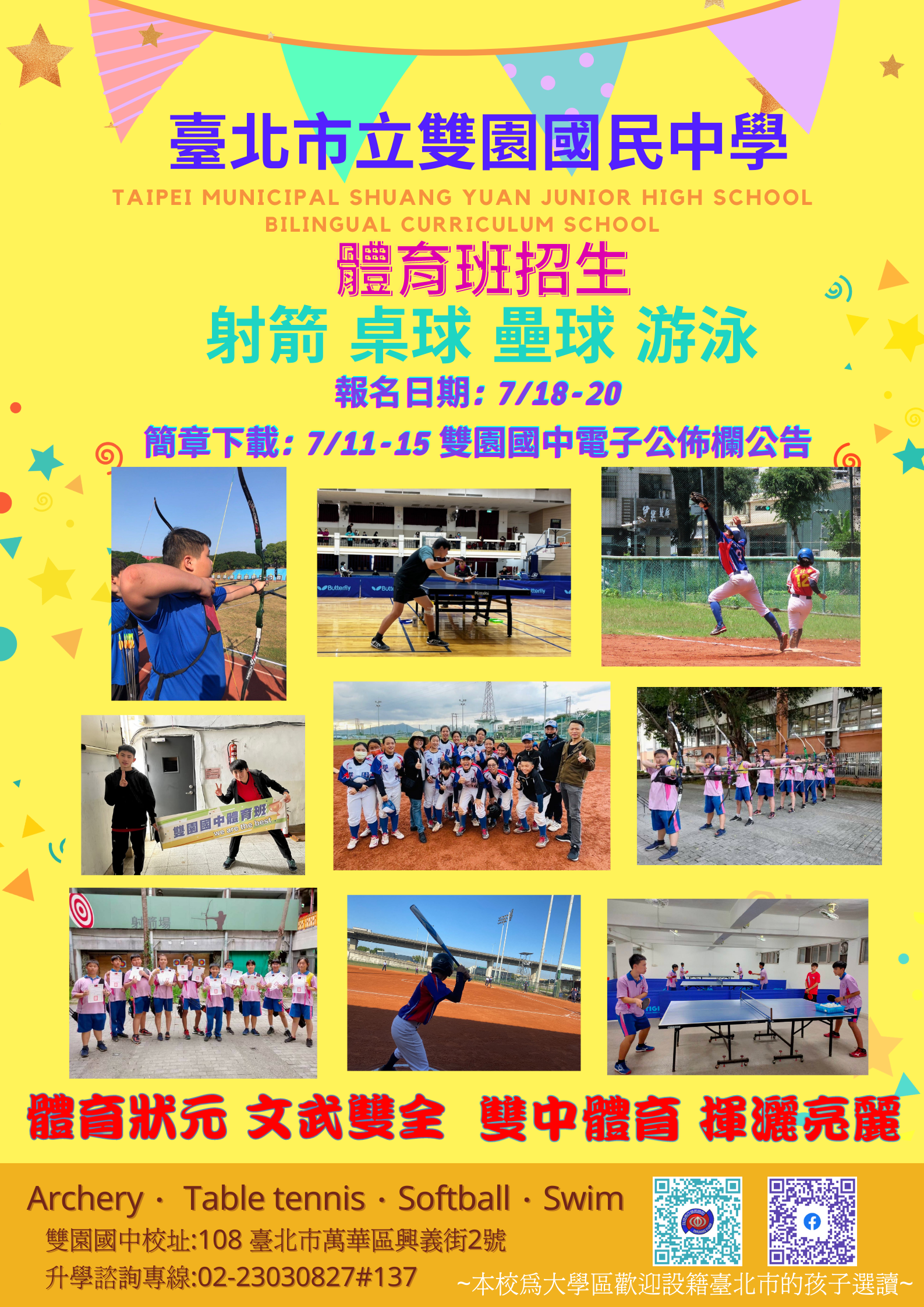 (二)、簡章下載:111年7月11日公告體育班二招簡章,逕至 本校首頁→行政公佈欄→最新消息 (網址: http://www.syjhs.tp.edu.tw/index.php)查詢及下載 列印。