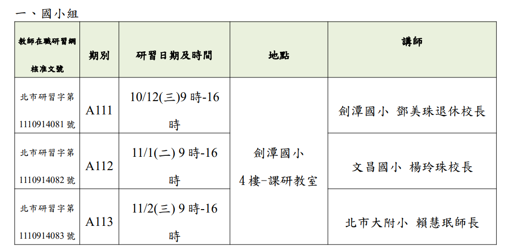 報名方式 即日起至開課前五日截止,於臺北市教師在職研習網站辦理登錄報名,報名網址 為 https://insc.tp.edu.tw/,請搜尋主辦單位:臺北市校長及教師專業發展中心。逾期恕 不受理,且不接受現場報名。(研習訊息→查詢條件→搜尋主辦單位:臺北市校長及教 師專業發展中心)。