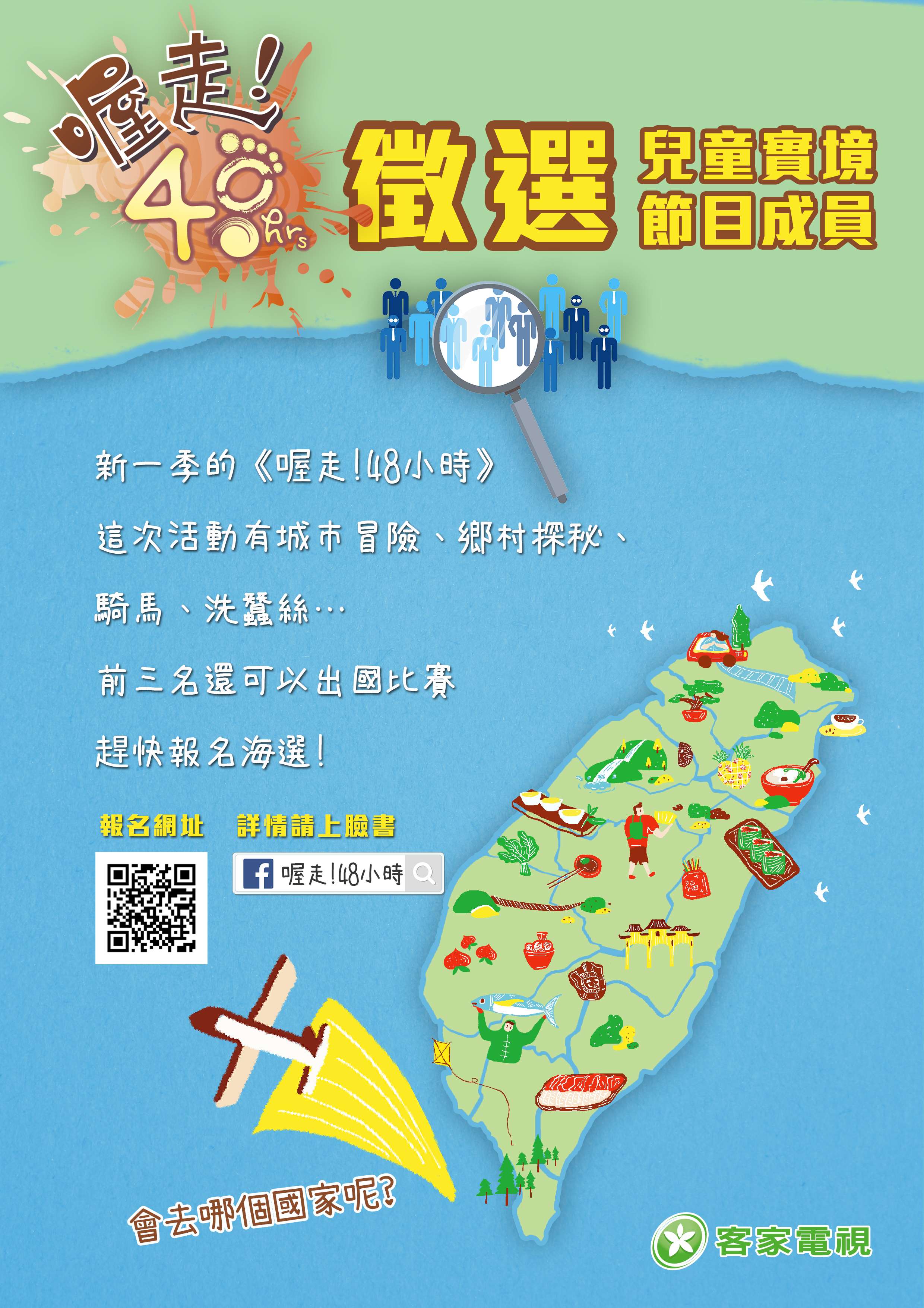 一、依據財團法人公共電視文化事業基金會112年3月3日 (112)公視客企字第1120000363號函辦理。 二、《喔走!48小時》是一個以四到六年級學生為主體的實境 節目,每季依據不同的主題設計情境,主要以戶外活動為 主,讓孩子體會在大自然中的樂趣,學習自己解決問題、 團隊合作、完成任務。曾多次獲選臺灣媒體觀察教育基金 會主辦之國人自製兒少節目五顆星,並榮獲兒少發聲獎, 也得到亞洲優質兒童節目入圍等國際肯定。 三、本節目即將展開第十三季拍攝,主題為「勇闖客家庄」, 目前正進行成員徵選,歡迎有興趣的同學報名參加。報名 與活動說明詳見:https://forms.gle /qpoVuPKv8afjryW37。 四、報名截止日期為112年3月10日,並預計於112年3月14日到15日進行海選,詳細時間地點將由製作單位另行通知。 五、如有任何疑問,請洽詢製作單位傳愛家族傳播文化事業有 限公司 (一)楊小姐02-24579231分機13,alice.y927@gmail.com 。 (二)林小姐02-24579231分機19,yun0308@gmail.com 。 (三)或參考節目粉絲專頁https://www.facebook.com /ogo48hrs。