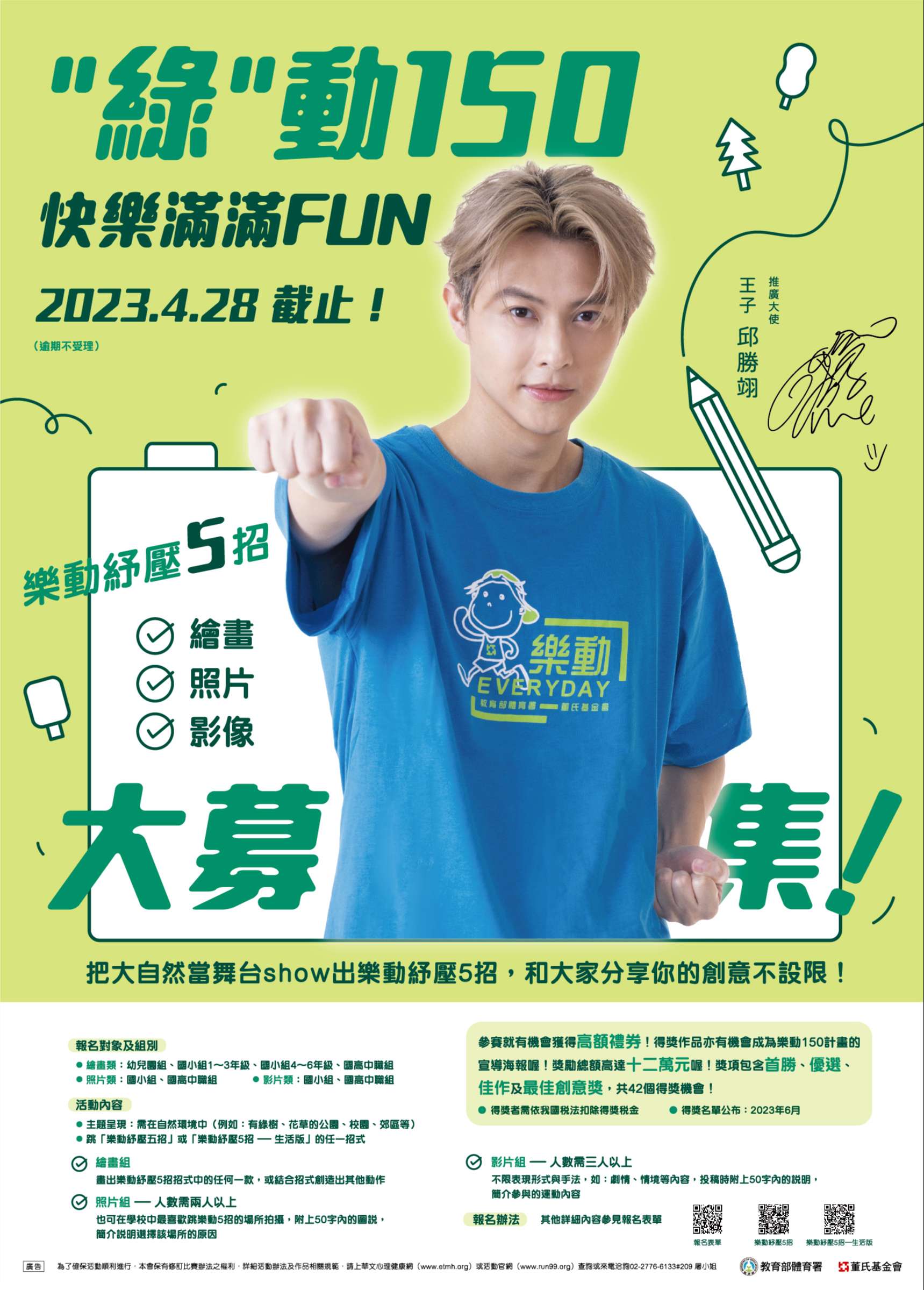「樂動紓壓五招」運動紓壓紀錄募集比賽,,鼓勵學生報名參與,得獎學生及指導老師均有機會獲得商品券或禮券。活動網址請參考https://reurl.cc/0Epgak。