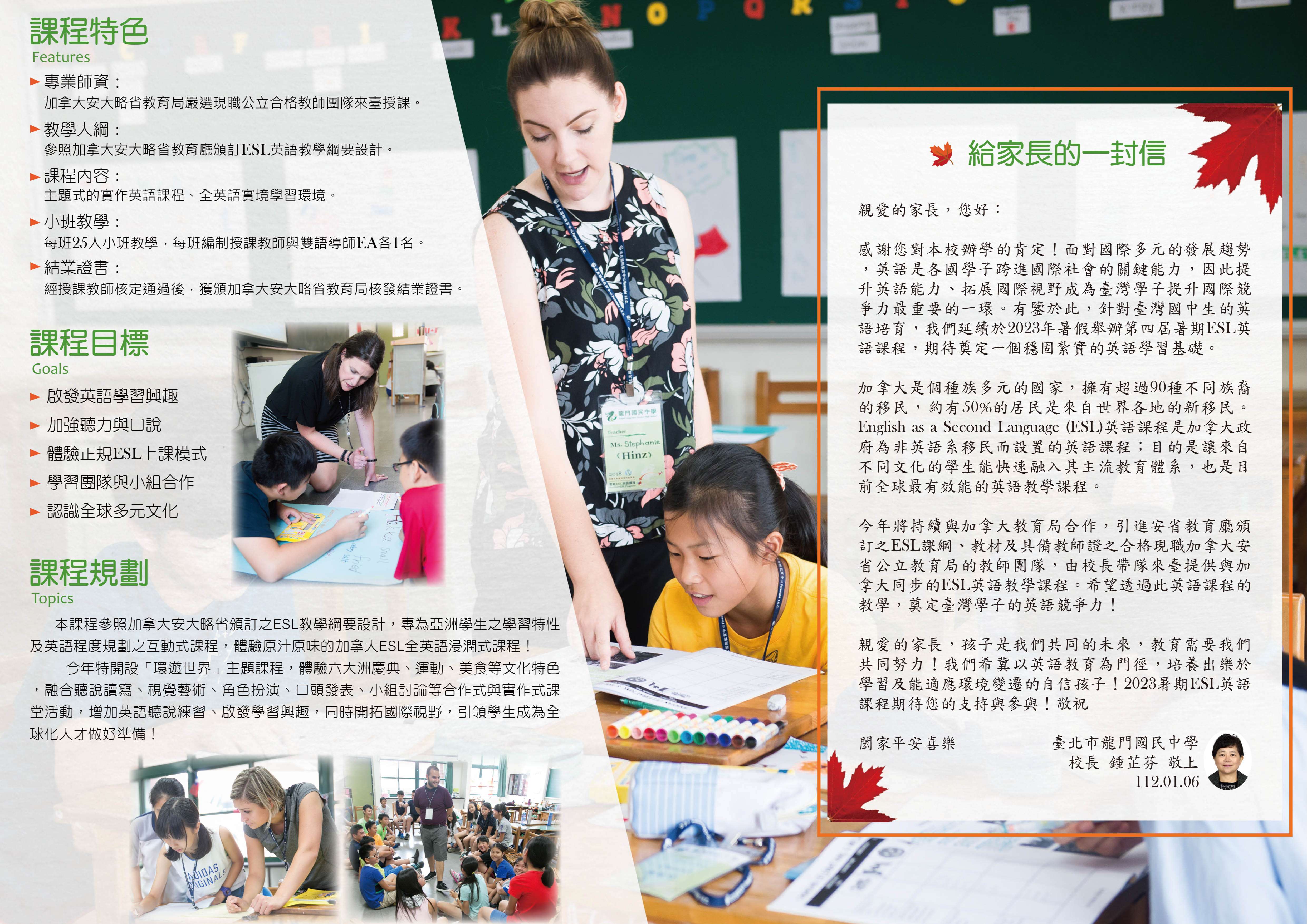 四、活動地點:臺北市立龍門國民中學。 五、錄取名額及截止日期:一般生招收100人、低收入戶學生招 收4人(需檢附相關正式證明文件),依報名順序錄取,額 滿為止。