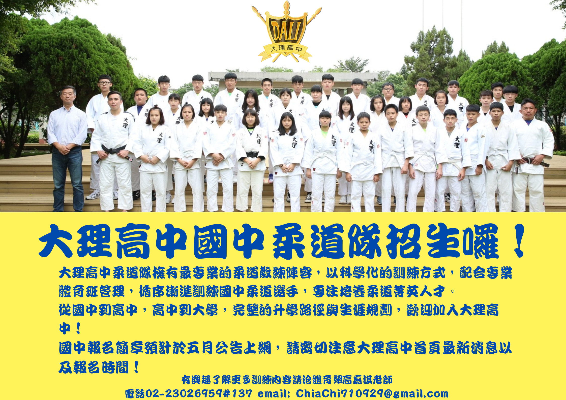 四、有關運動代表隊招生諮詢服務,請洽大理高中(國中部)體育組:02-23026959#137