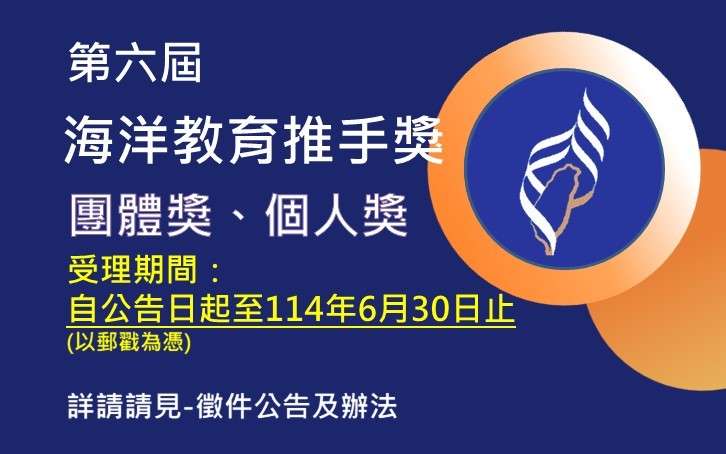 四、本計畫相關資訊及歷屆獲獎名錄等,置於臺灣海洋教育中 心網站「海洋教育推手獎」專區,請逕上網瀏覽參閱(網址:https://tmec.ntou.edu.tw/p/412-1016-6276.php? Lang=zh-tw)。